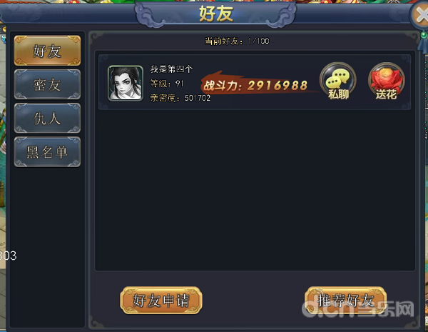 梦幻遮天好友功能是经常使用的社交功能,在游戏中一个人战斗,难免会觉得孤单寂寞,不如约上三五知己,邂逅几个游戏中的侠客一起战斗。在梦幻遮天的好友系统里,还有推荐好友功能,让小伙伴们更容易融入游戏里,还有送花等互动功能,如果遇上特别玩的来的好友还可以把他加入到密友中,这样你就能更容易的关注到他。