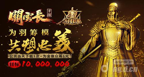 众筹活动向来都需要大家集资为产品助力,而《关云长》手游“为羽筹模”并不需要大家出资,只要在游戏公测当天下载游戏,即看作是为该项活动筹集到1元钱,蜗牛游戏的目标是1000万下载量,只要达到目标,就出资千万打造关公金像,用于弘扬忠义文化。这种颠覆传统的众筹方式是为中华民族博大精深、源远流长的文化做一次宣传,是对关公精神的致敬。