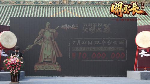 亚洲人气偶像何润东作为《关云长》手游代言人也亲临现场,与蜗牛相关负责人、以及当地政府领导共同拼接组合完成“青龙偃月刀”后,开启了名为“为羽筹模,再塑忠义”的众筹仪式。蜗牛相关负责人介绍,在7月28日双平台公测的当天,蜗牛将向全行业实时展示真实的下载数据,每一位在公测当天通过任意平台下载《关云长》手游的用户,即视为为“关公金像”贡献了1元钱的力量,目标是达到1千万下载,届时蜗牛将斥资千万打造关公金像,以重塑忠义精神!