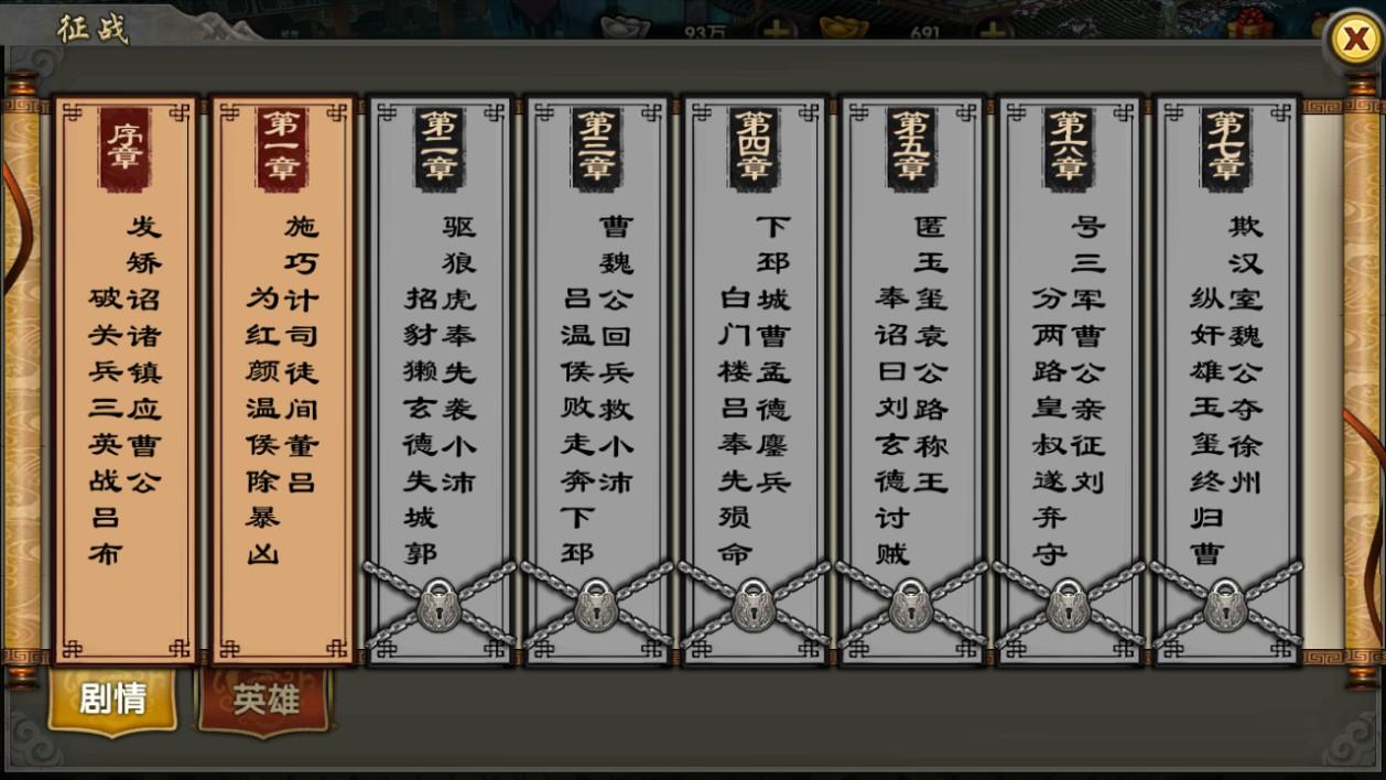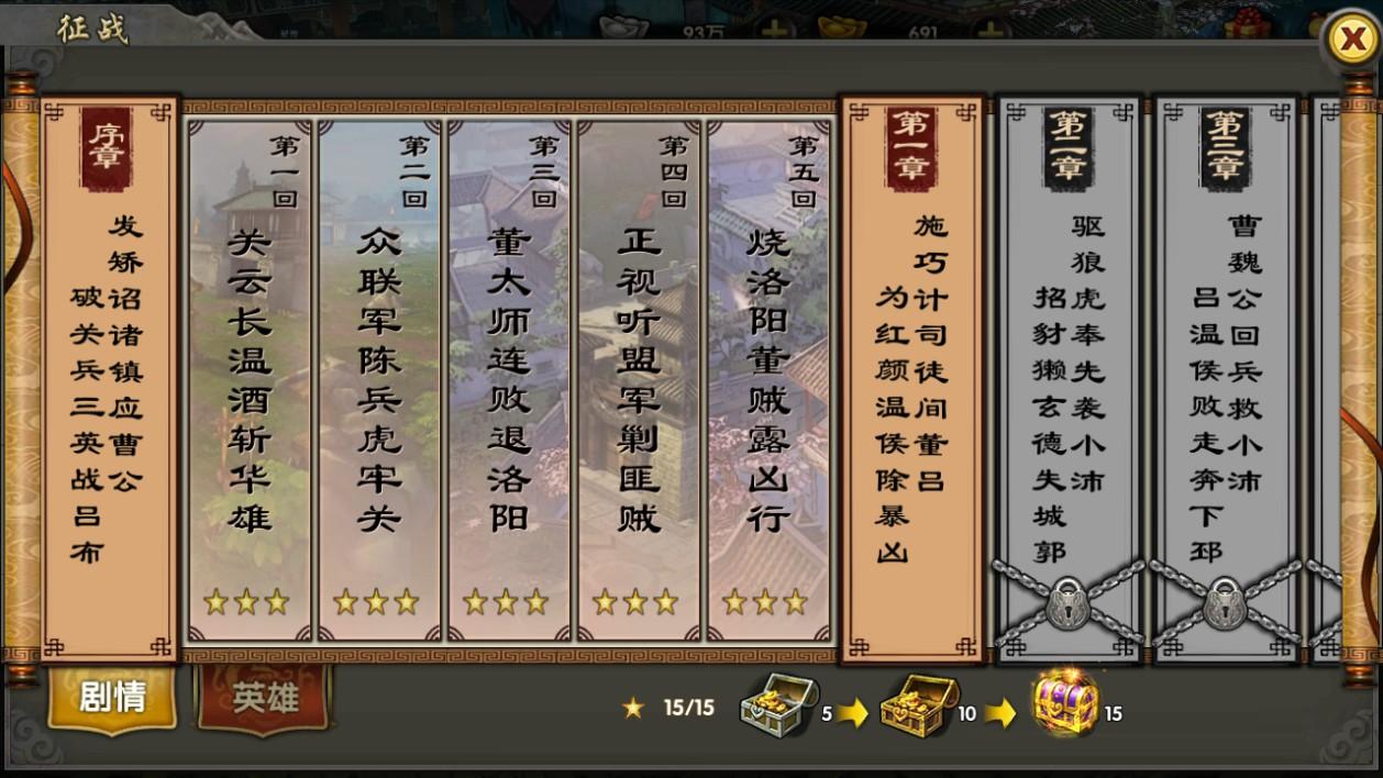征战是关云长游戏的主要PVE系统,玩家在征战中经历游戏的整个剧情,征战章节按照玩家等级开放。