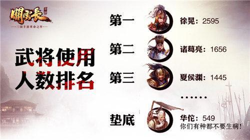 这次谈到武将使用次数,真的很出乎意料。在《关云长》手游的三国世界里,玩家可以任意切换三国武将上阵杀敌,而首测的数十位英豪当中,偏偏是貌不起眼的徐晃徐公明成为了第一,这也让排名垫底的三国第一名医“华佗”老先生很是生气。