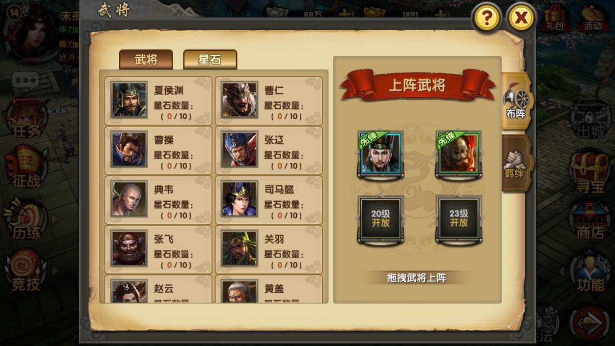在游戏中可以收集武将星石招募对应武将,武将星石可以通过精英副本获得。