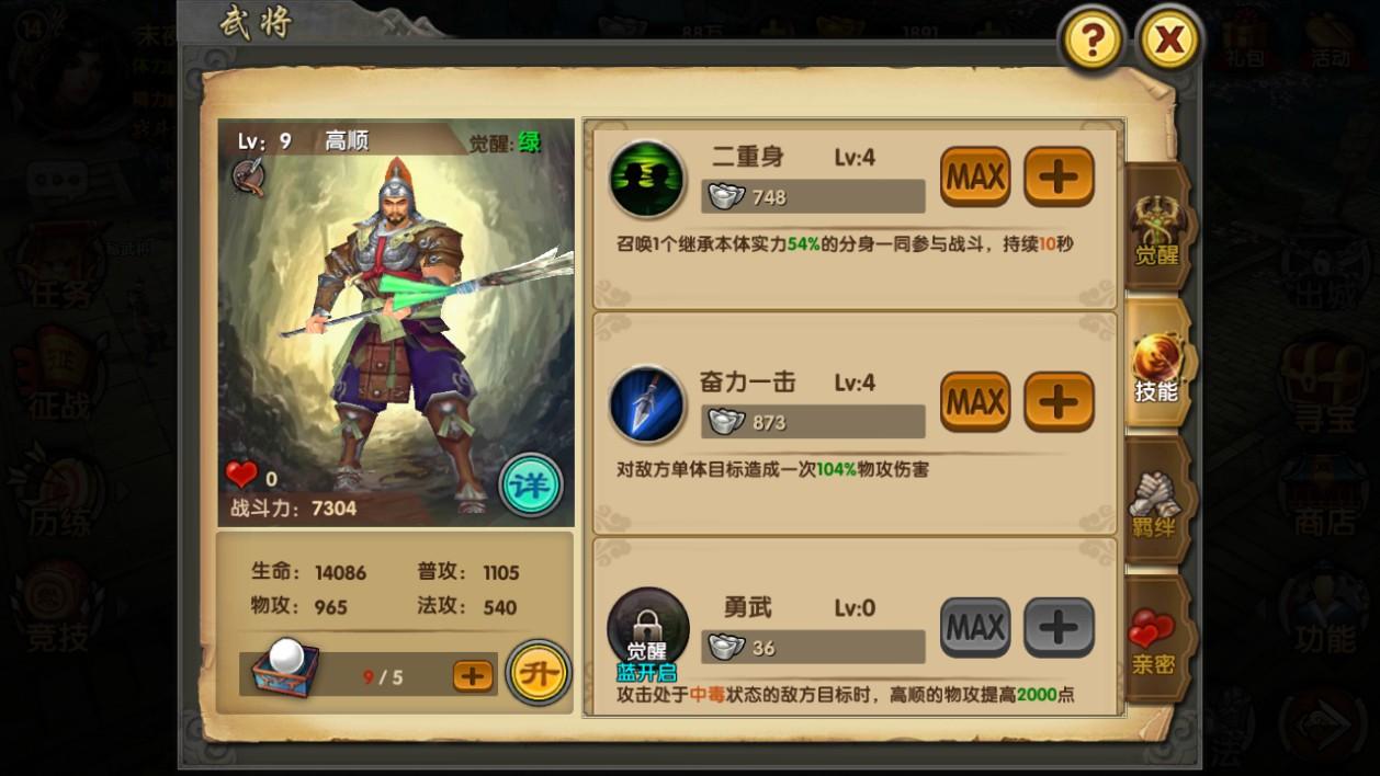 主角和招募到的武将都不要忘记升级技能,技能等级越高,实力越强。