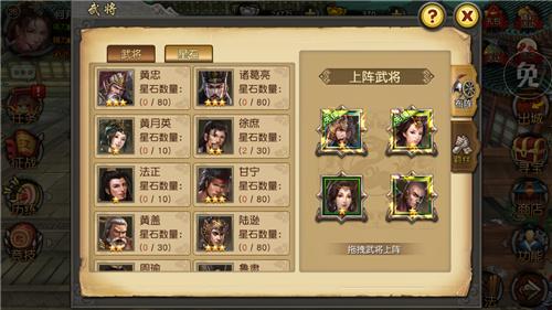 当然,不同品阶的武将所需要的星石数量也有所不同,例如像黄忠、诸葛亮这样的三星武将则需要收集对应的80个武将星石才可以换取,二星武将则需要30个星石,一星武将只需要10个星石就可以兑换了,那武将星石到底怎么获得呢?