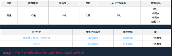 三星条件:拾取所有金币 拾取所有宝箱 战胜所有训练师