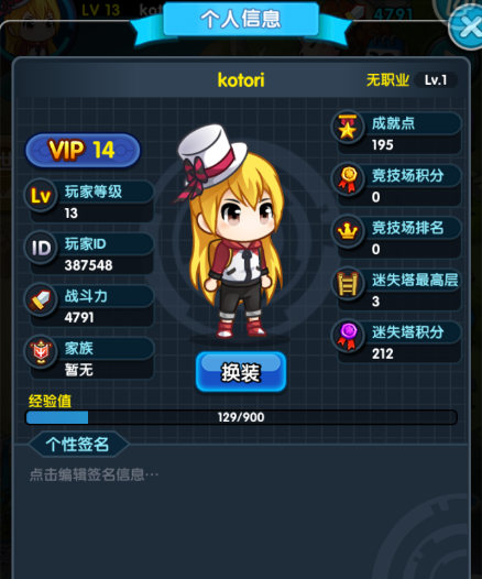 在游戏中选择人物头像,可以看到人物信息介绍,中间有一个换装的按钮,点击进入后就可以看到各种不同部位的时装选择啦~