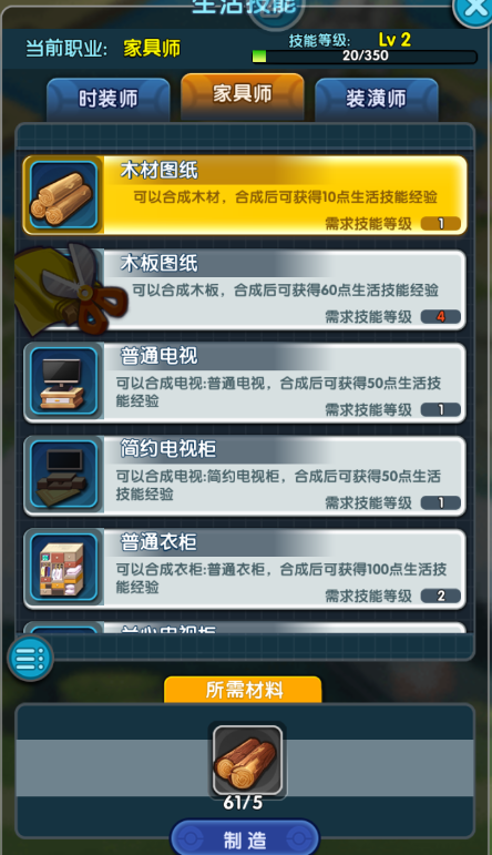 制造家具需要有足够的材料,有足够的材料后就可以直接制造家具啦!