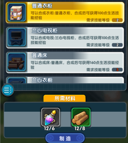 家具制造完成后就可以在自己的小屋内进行布置了,将界面上的家具点击使用到房间内,然后移动到自己想要摆设的位置就可以完成摆设!