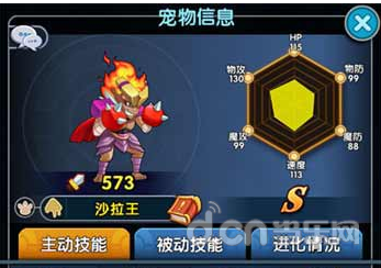 先分析一下这只宠物的潜力,通过六维属性了解沙拉王的物攻以及速度仅仅是一般,主动技能方面天赋中的音速拳是高威力高百分比技能,疯狂攻击速度追击,挖地洞则较为一般。但是其被动栏中没有援助槽,5个全部为被动槽,这点就很有操作性了。