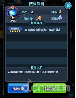 五级的旋风可以物理免疫四回合,物理免疫的意思和魔法免疫类似,受到的物理伤害降低为1(而且可以照常获得怒气)