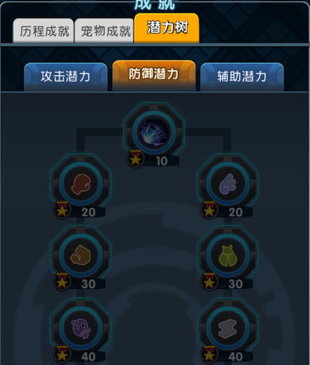 潜力树又分别有攻击潜力、防御潜力和辅助潜力三种,攻击潜力主要增加宠物的攻击属性,防御潜力则是增加宠物的防御属性,辅助潜力则是可以给角色在游戏中进行相应的操作时获得额外的效果,训练师们可以根据自己想要的效果消耗潜力进行