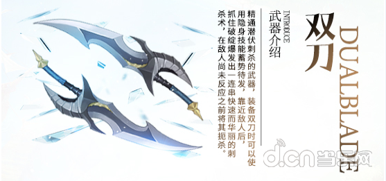 双刀的打法特色为“刺杀”。即技能套路突出爆发,战斗节奏为打一套就走。