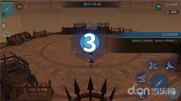勇者进入斗场后,每层都将和一个幽灵战士进行切磋PK,首层是太刀修炼家,听语气就知道是个特别狂妄的小子~