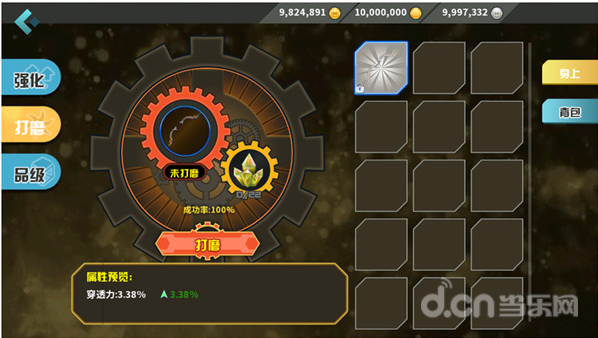 打磨不能进行成功概率提升,但是打磨失败也不会出现降级和破裂的情况。