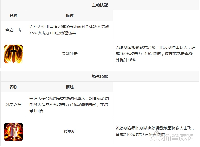 守护天使作为前排肉盾来说,不但拥有着极强的防御力,更有着强大的控场能力。战斗中不但能够通过怒气技能对敌方群体造成眩晕状态,更能通过自身的被动技能提升全队的攻击力。而其主动技能更是能够对地方全体造成伤害。可以算得上是游戏中居家旅行必备的强力外援了。