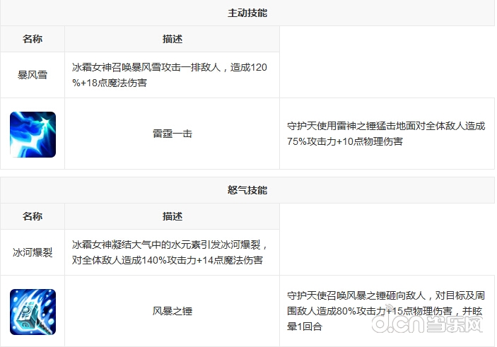 冰霜女神是法师中的佼佼者,强大的AOE能力与控制能力相得益彰,怒气技能可以对全部敌人攻击,并赋予冰霜标记,主动技能可以攻击一排的敌人,被动技能拥有削弱全部敌方魔法防御的能力,所以冰霜女巫搭配其他法系输出也是相当的出色。