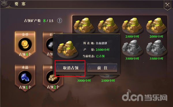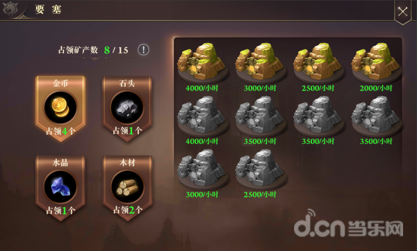 从要塞的界面,咱们能清晰看到自己分别占领了多少矿产、每个矿产的产值效率,还能快速前往每个矿产所在的章节(简直比装了GPS更方便!)