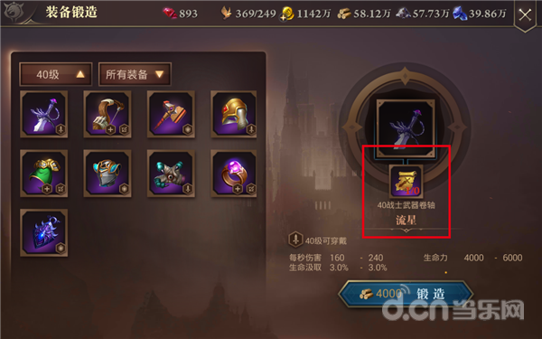 有了卷轴之后,就可以锻造武器了,以40级战士武器举例,只需要消耗1个对应的40级战士武器卷轴和4000木头,就可以轻松获得1把40级的武器。而生成的武器品质是随机的,运气好一点,或许还可以获得“珍品”称号哦~如果你的英雄全身都是“珍品”装备,那战斗力肯定是杠杠滴!