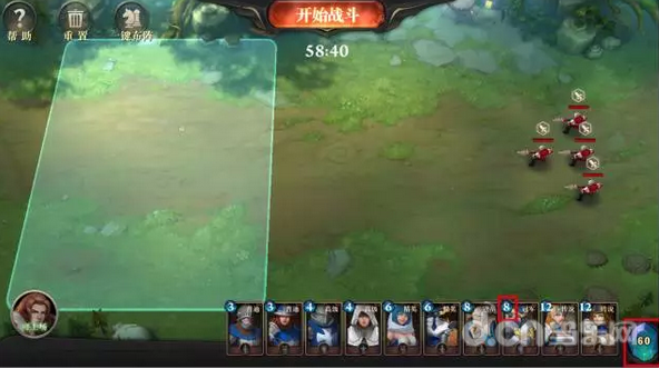 战斗屏幕的右下角显示当前布置兵力可消耗的人口数;