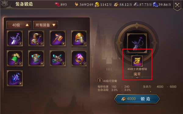 有了卷轴之后,就可以锻造武器了,以40级战士武器举例,只需要消耗1个对应的40级战士武器卷轴和4000木头,就可以轻松获得1把40级的武器。而生成的武器品质是随机的,运气好一点,或许还可以获得“珍品”称号哦~如果你的英雄全身都是“珍品”装备,那战斗力肯定是杠杠滴!