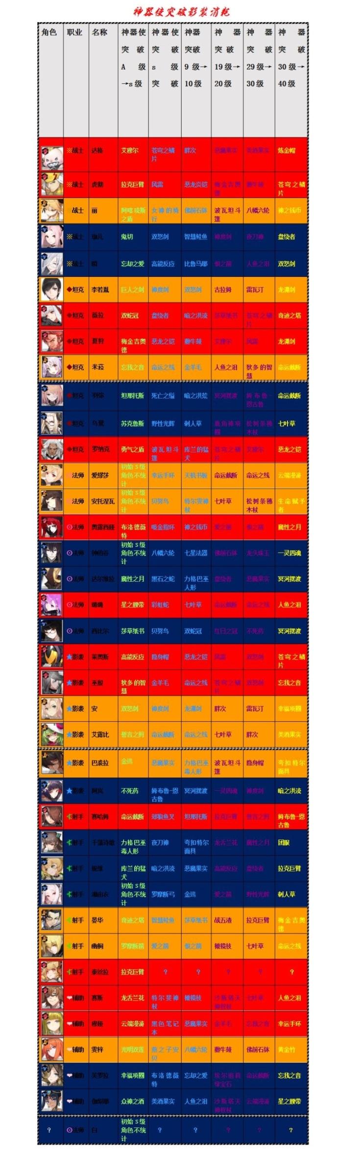 永远的7日之都神器使突破所需影装 神器突破影装消耗表