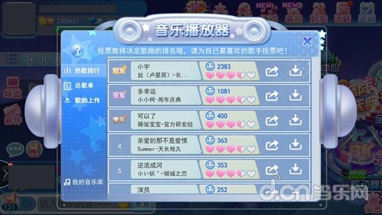 歌曲可以通过官网上传,每期审核通过的歌曲,将直接录入热歌排行。根据投票来决定排名,排名靠前的歌曲将有机会在舞蹈中使用哦~不仅可以自己欣赏,更能让全服玩家都欣赏到你的天籁之声。