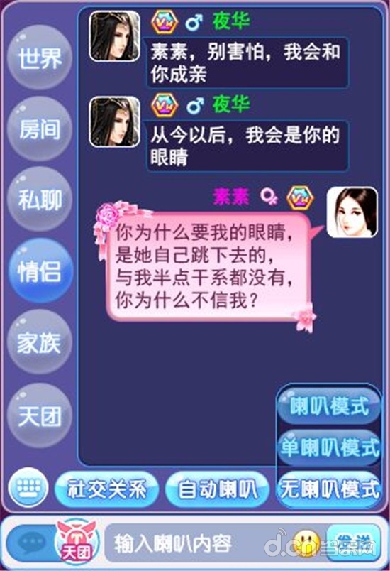 细心的小伙伴可以发现,聊天界面还增加了频道选项,以后聊天就能够在情侣、家族、天团等各个频道无缝切换,既简单又快捷!另外,还为不喜被打扰的小伙伴增加了单喇叭和无喇叭模式,是不是很贴心!!