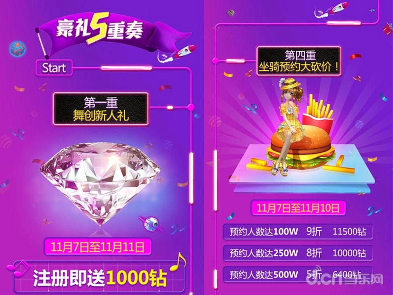 在“双11”节期间(11月7日-11月11日)新注册的用户,《舞创天团》(原天天炫舞)将在账号创建成功后赠送1000钻石的奖励,让你离你心仪的装扮更近一千步!