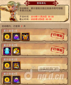 在登录有礼活动时间内,累积7天登录不仅有橙装,还有稀有的紫卡英雄赠送。每日签到的入口在右下方“更多”内,与登录有礼相似,有符石、稀有物品、紫卡英雄等赠送,只要每日登录领取,好礼送不停。