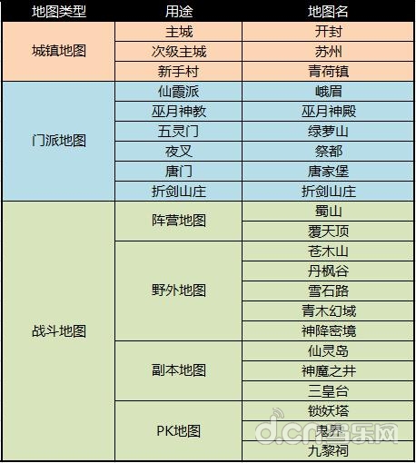 游戏中共有22张场景地图,根据地图类型和用途列表如下
