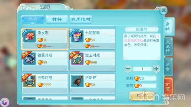 染色需要两种道具,道具可以在商城购买或者一些任务中得到。