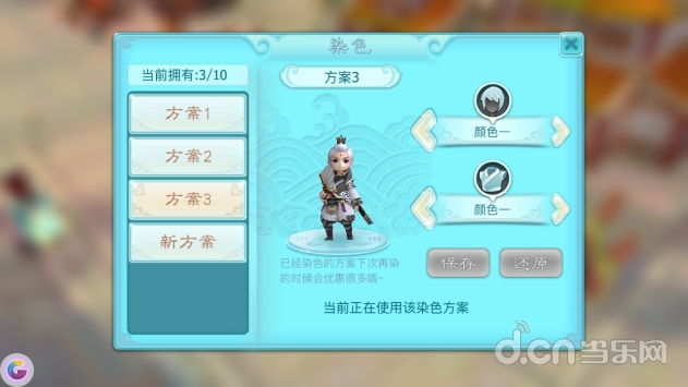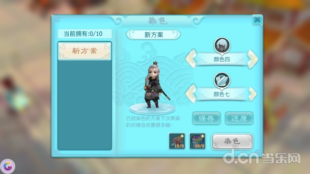 消耗对应的道具即可染色成功,不同搭配可以选择保存方案,每位玩家有10个方案可以保存。