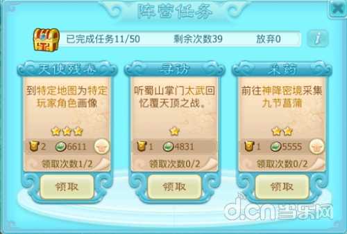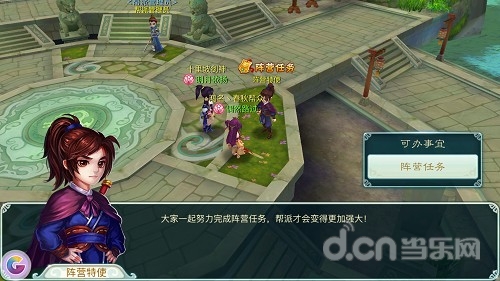 首先回到帮派地图,找到阵营特使领取阵营任务,接取天使残卷任务。