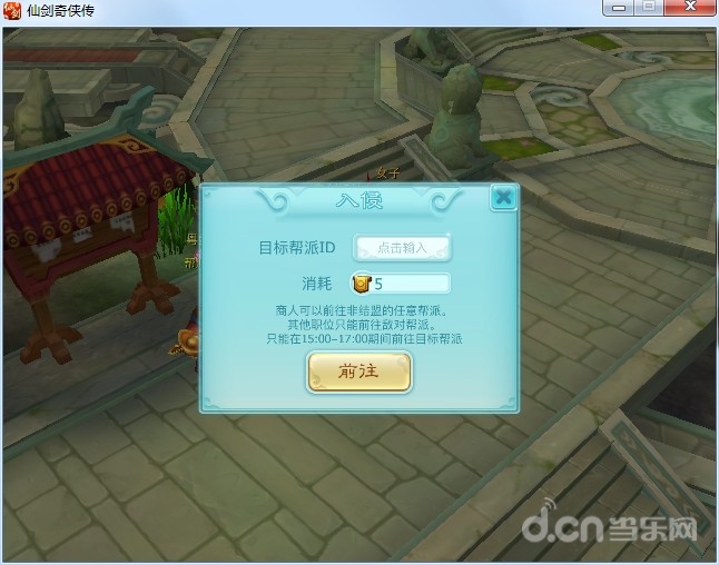 进入帮派找到任务NPC,接取任务。输入你要入侵偷取帮派资金的帮派ID,在规定的时间段内(只能在15:00-17:00进行帮派入侵)点击前往即可。