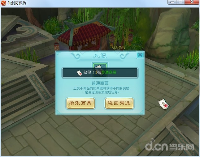 跟着任务流程一直到获取商票,这里需要注意一下,商票从普通到顶级,奖励依次递增,不满意奖励可以选取换张商票,然后以上流程重来一遍,只到随机到满意的为止,然后返回帮派。