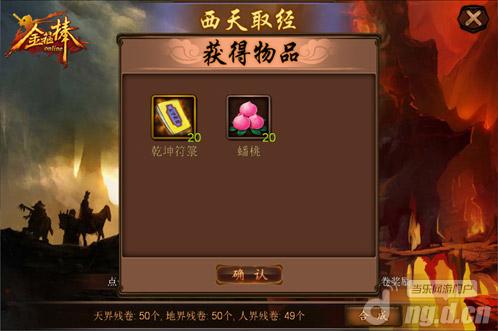 看完了上面的玩法介绍,是不是很想踏上取经之路呢?拦截成功后,会有一定几率获得一个当前区域的残卷,自己取经成功也会获得一个残卷,集齐天、地、人3个区域的残卷后可合成一个完整的独一无二的经书,获得乾坤符箓x20、蟠桃x20的奖励。
