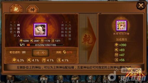 对小编这样的平民玩家而言,只有8个五星神仙,阵法卦位放什么?放有缘分的四星神仙也有配缘作用,只不过无法为上阵神仙提供属性加成。例如上阵神仙中有二郎神、红孩儿,阵法位置可上阵哮天犬、小龙女与之类的四星神仙与之配缘,提升这些五星神仙的属性。