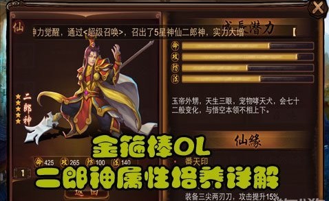 金箍棒OL二郎神属性技能培养指南小编今天为大家好好讲解下这位神仙,游戏中作为五星神仙,金箍棒OL二郎神收到了玩家朋友们的强烈关注,小编今天就为大家解答一下这位五星神仙的相关玩法吧。