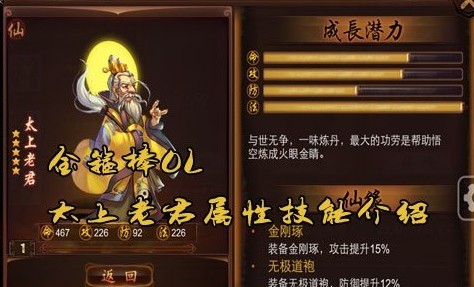金箍棒OL太上老君属性技能介绍小编为大家带来了,在本款游戏中不少玩家朋友们已经抽到了这位神仙,小编今天就为大家解答一下太上老君在游戏中怎么样,感兴趣的玩家朋友们可不要错过海盗为大家带来的攻略哦,一起来看看吧。