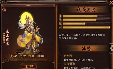 太上老君高法术成长建议玩家朋友们在游戏中培养纯法术,太上老君初始生命和防御略低,可以考虑培养他作为纯法输出在队伍中间拼RP。
