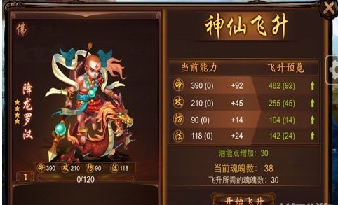 游戏中神仙飞升其实是很简单的玩法,玩家们如果有了神仙后,用此神仙的魂魄就可以飞升,飞升后属性按照比例提升,也会增加潜力值,通过飞升会大幅增加神仙的属性,是提高神仙实力的必要手段之一。
