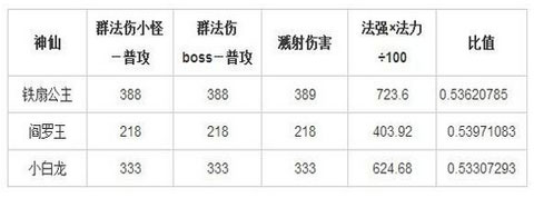 可以看到,溅射伤害就是群体法术的是独立伤害,同样的实际伤害和神仙的法术伤害是一个比值,约为0.54,具体公式为: