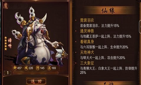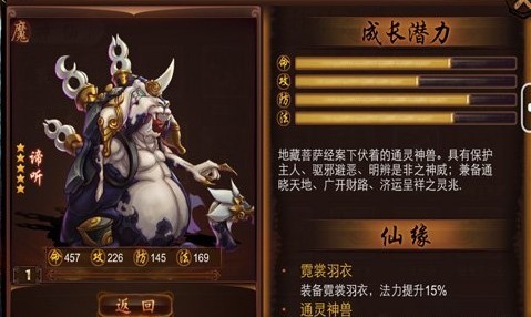 作为五星神仙,谛听是游戏中还是比较不错的,缘分非常容易搭配,中期非常给力。