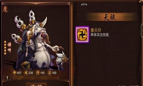 天赋技能五星神技番天印:单体技能,对单个目标造成大量伤害