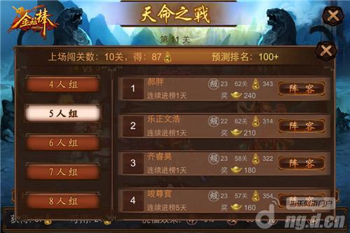 《金箍棒OL》中最关键、最刺激的玩法非天命之战莫属了!天命之战的参与不消耗任何体力、精力或者道具,且通关层数越多,获得的各类乾坤袋及元宝数量也会更多,另外每个组别的前20名都会有大量的元宝奖励,对于非R玩家的重要性就不言而喻了。