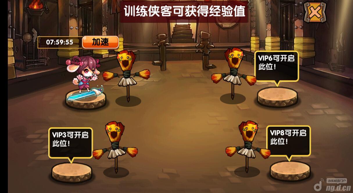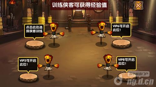 训练场可以为玩家的侠客增加经验,每个玩家最多拥有4个训练位,第一个训练位默认为开放状态,其他3个训练位分别在VIP 3级、6级和8级开放。