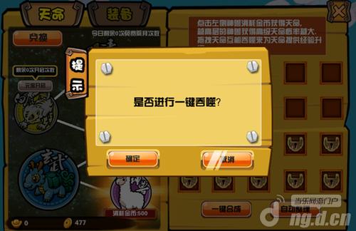 祭拜神兽,可获得天命。玩家通过消耗一定数量的金币进行祭拜,祭拜有可能失败,失败之后不会得到天命,但会返还大部分祭拜消耗。