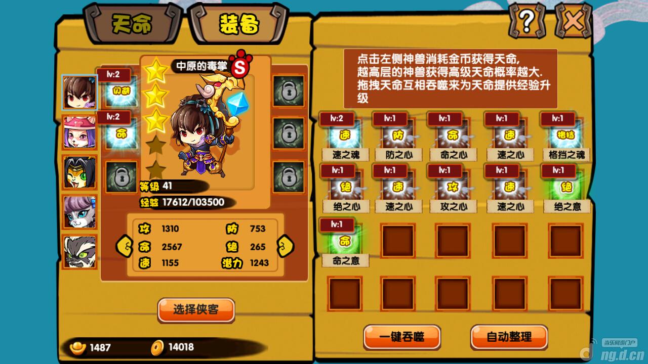 佩戴一个天命可以增加一种属性,各位大侠可以自主选择攻、防、绝、速、命、命中、闪避、穿透、暴击、格挡、坚韧,随侠客等级的提高,佩戴数量逐渐增加,每个侠客最多可以佩戴6个天命,但同种类型的天命只能佩戴一个。