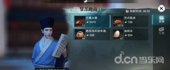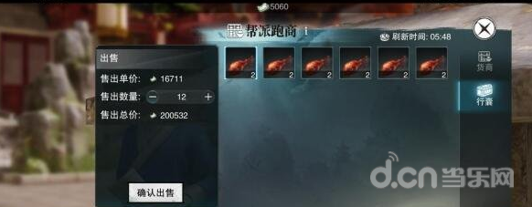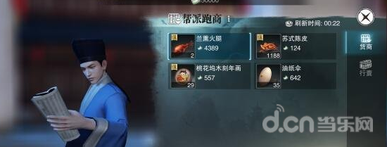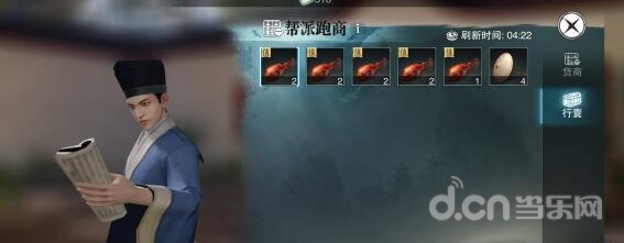 如果货物都被别人买的差不多了,而刷新时间在1分钟左右可以等一等再买;而初始行商包裹有6格,行商秘技打包袱可以提升包裹格数,可以优先提升该技能。