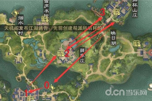 传送到江南后会出现在地图严州城外的0位置,我把途中需要采购的点从1标记到5号点,最终赚取到20万后还是要从0号点回帮派,零速马从5号点骑马自动寻路跑回0号点需要2分钟左右。
